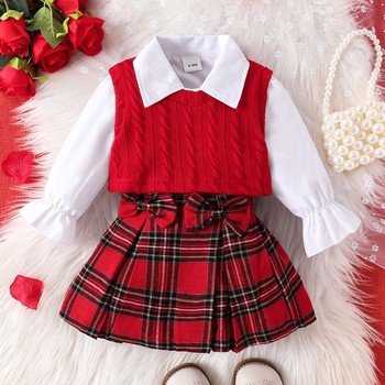 ชุดสูทกระโปรงเด็กผู้หญิง3ชิ้นเสื้อแขนยาวสีขาวสำหรับฤดูใบไม้ผลิและฤดูใบไม้ร่วง